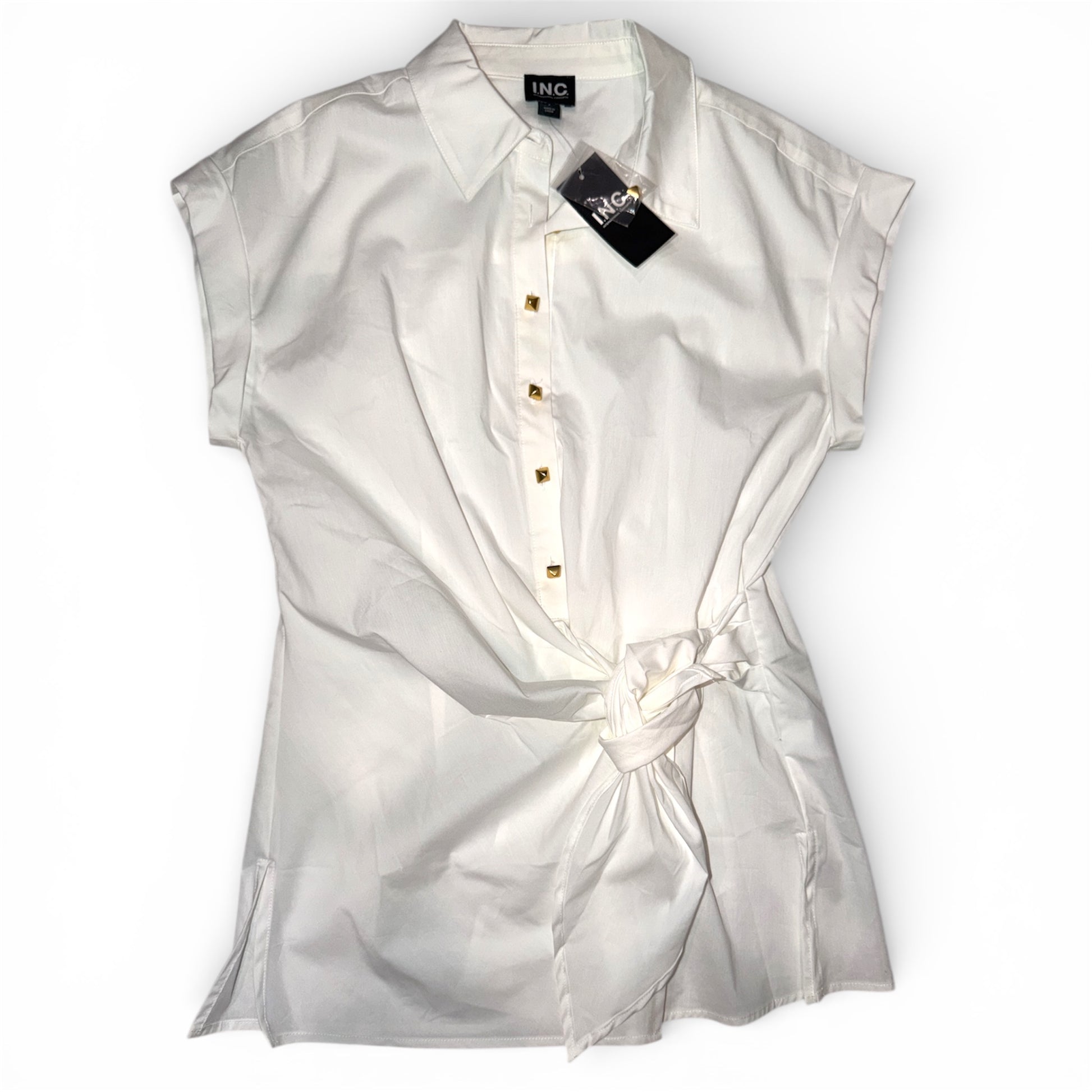Un diseño frontal retorcido y una cintura ceñida le dan una sensación elevada a una silueta de camisa clásica, de I.N.C. Conceptos Internacionales®. Talla small