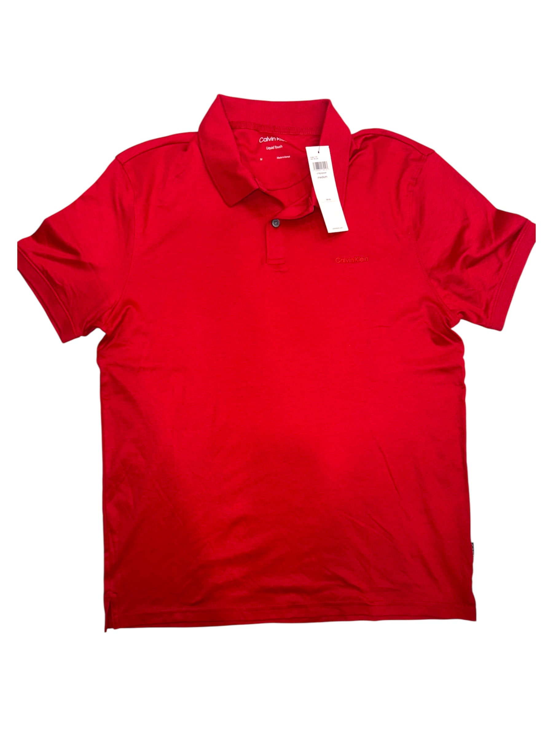 Camisa estilo polo marca Calvin Klein para hombre color chili pepper con logo en palabras
