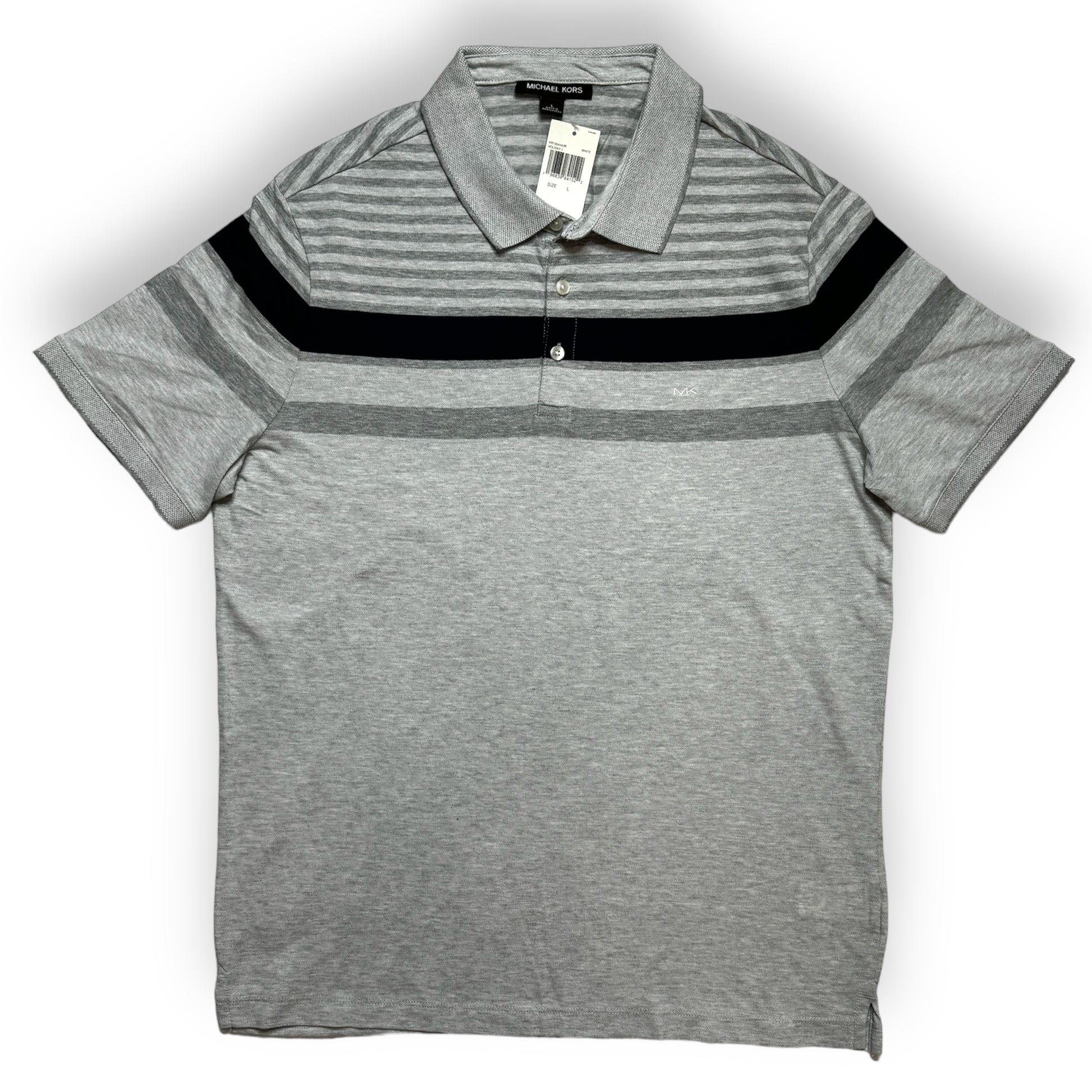 Camisa estilo polo para hombre marca Michael Kors en gris con raya Azul oscuro