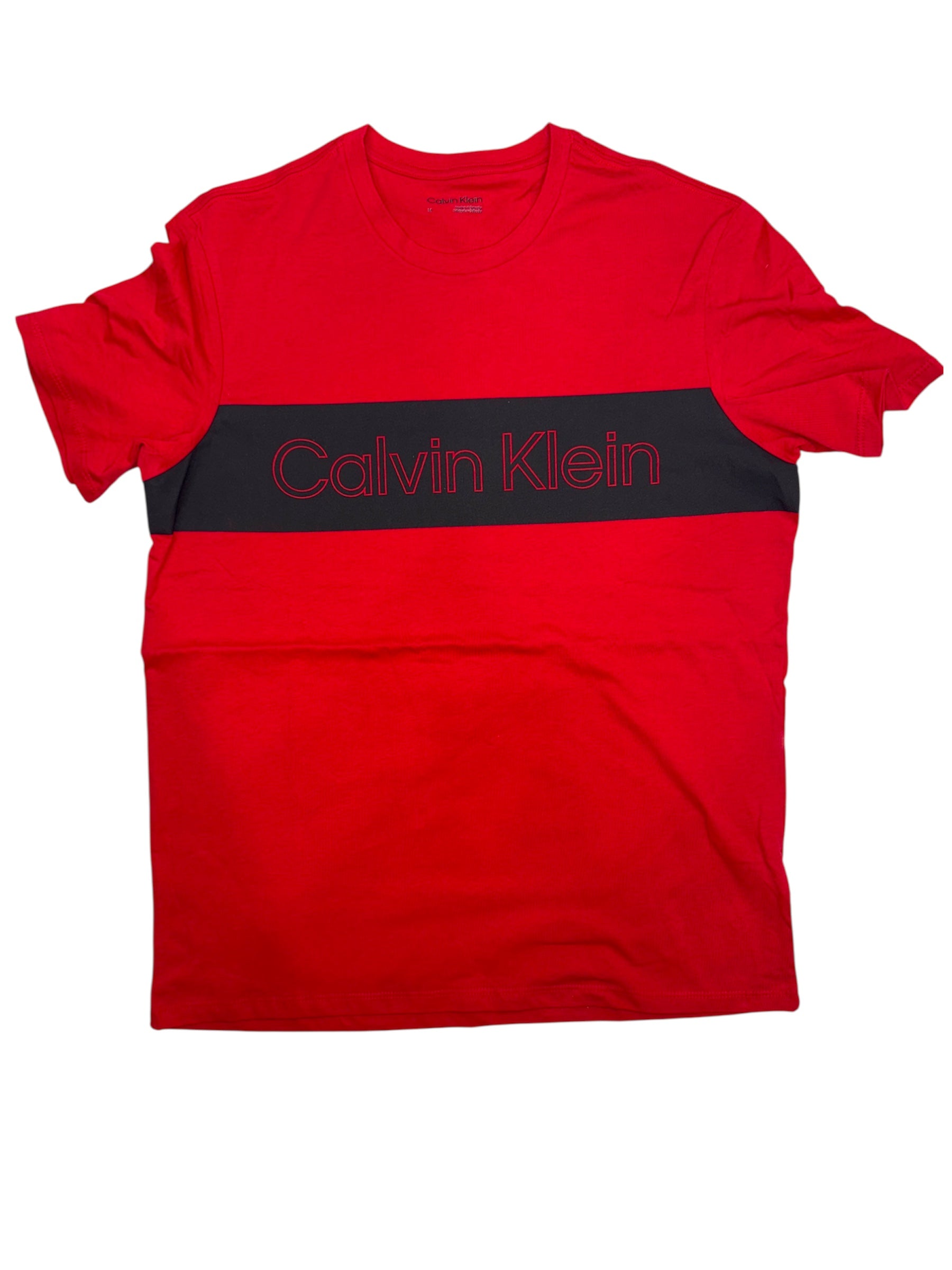 Camiseta Calvin Klein para hombre color dojo con logo “Calvin Klein” grande en raya negro talla M