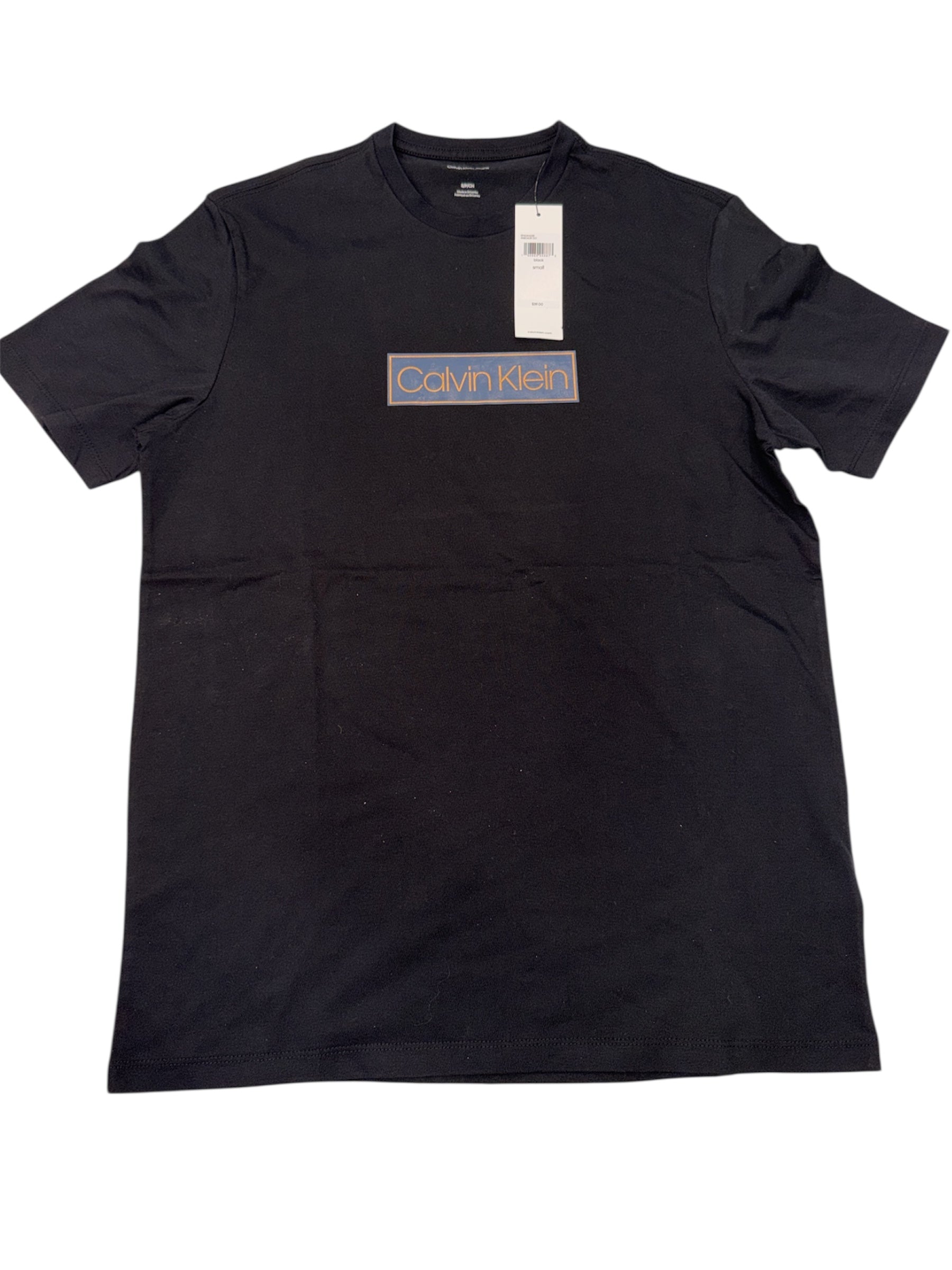 Camiseta Calvin Klein para hombre color black con “Calvin Klein” logo en el medio en navy blue y gold