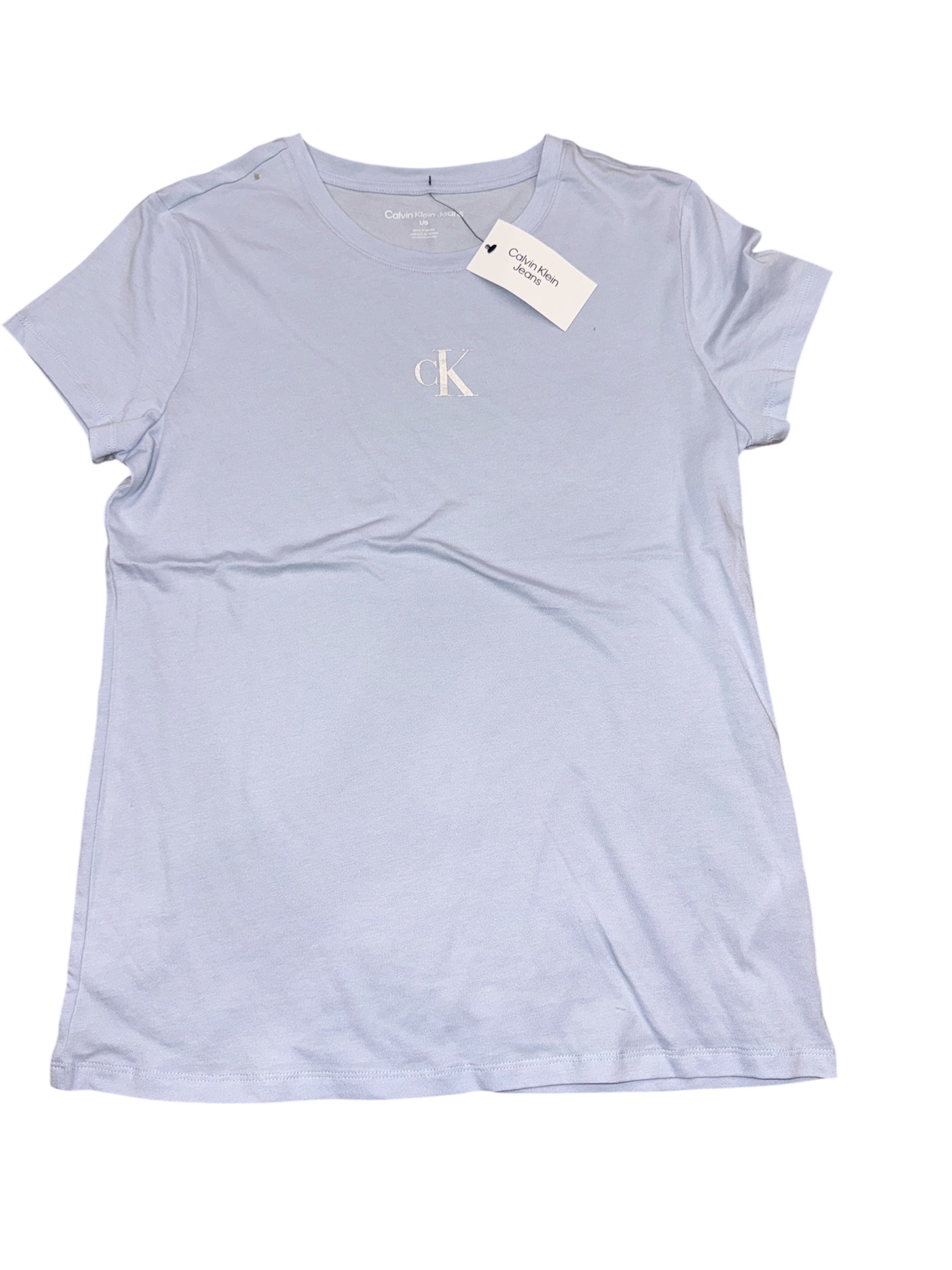 Camiseta Calvin Klein Jeans para mujer en light blue con logo CK plateado talla L