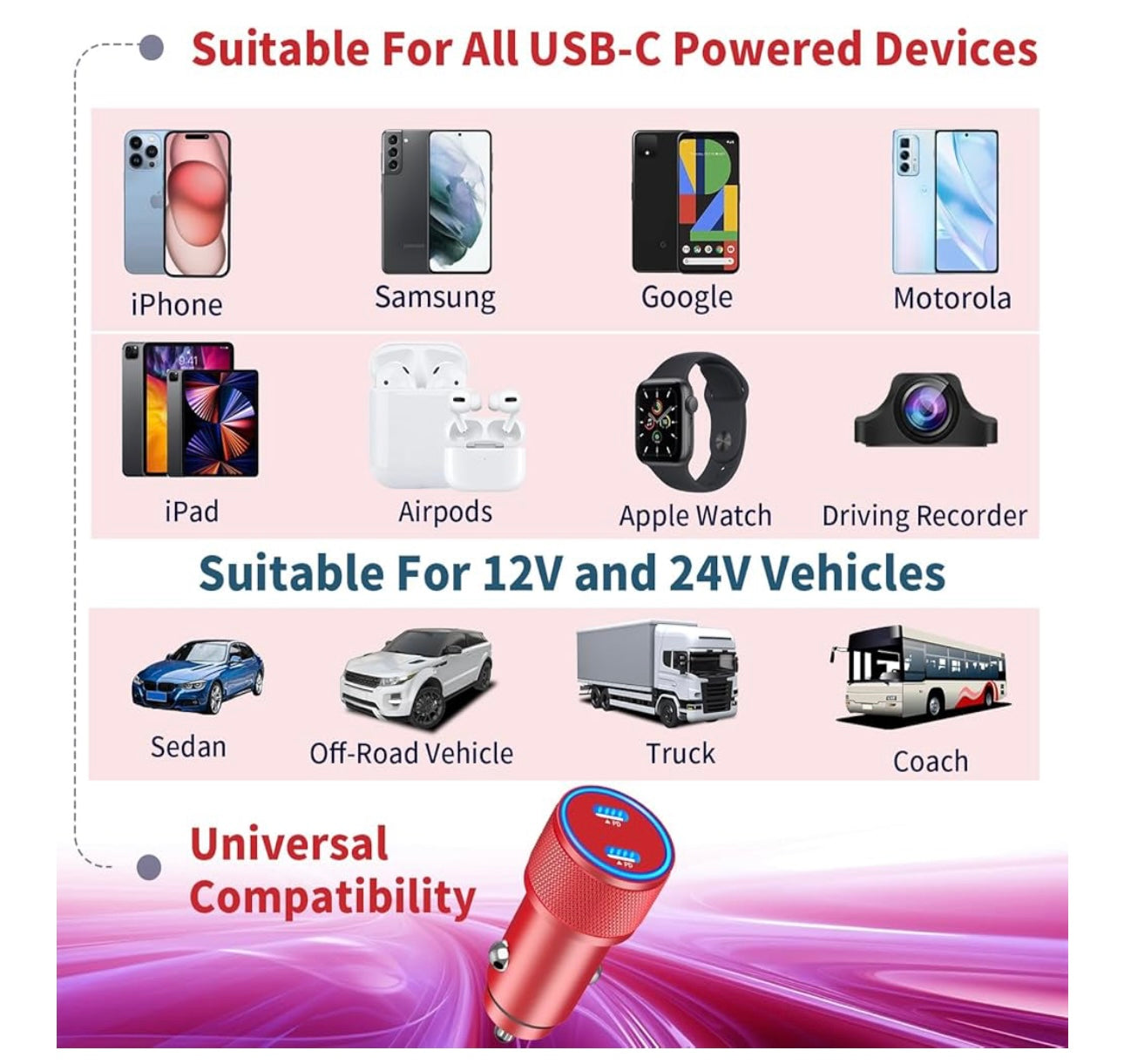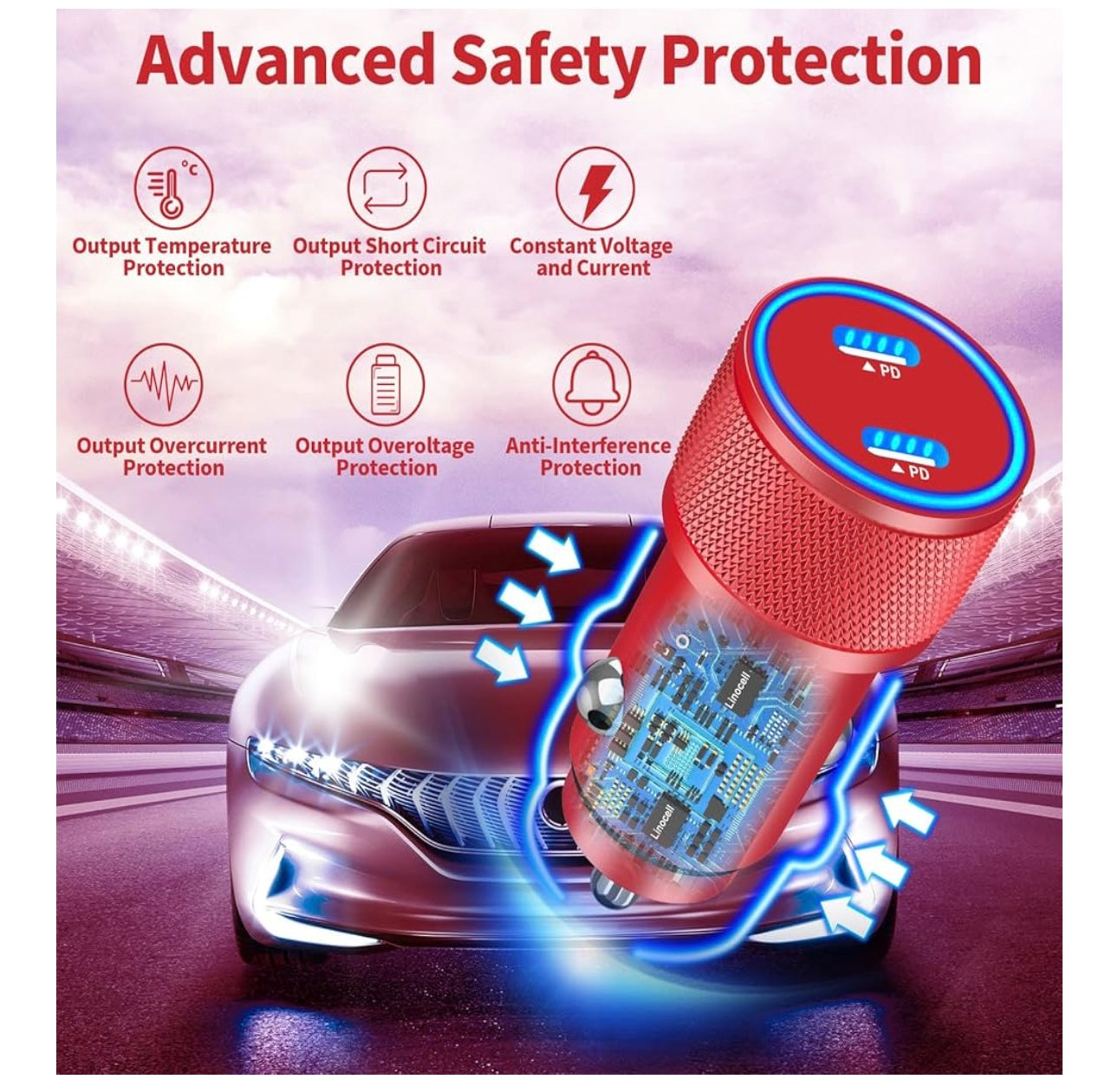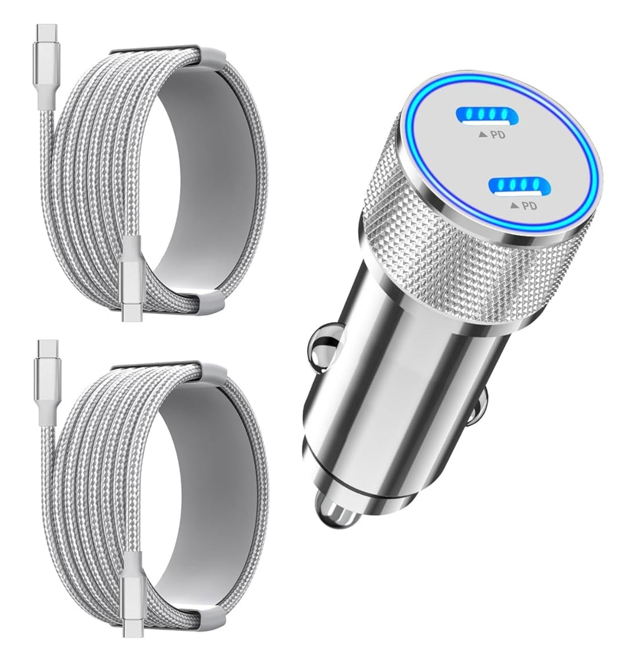 Cargador rápido para iPhone 16, Linocell 90W Dual PD Encendedor de cigarrillos de energía para coche USB-C Cargador rápido para coche + 2 paquetes de cable trenzado tipo C para iPhone 16 Pro/15/Galaxy S24/S23/Pixel/iPad Pro