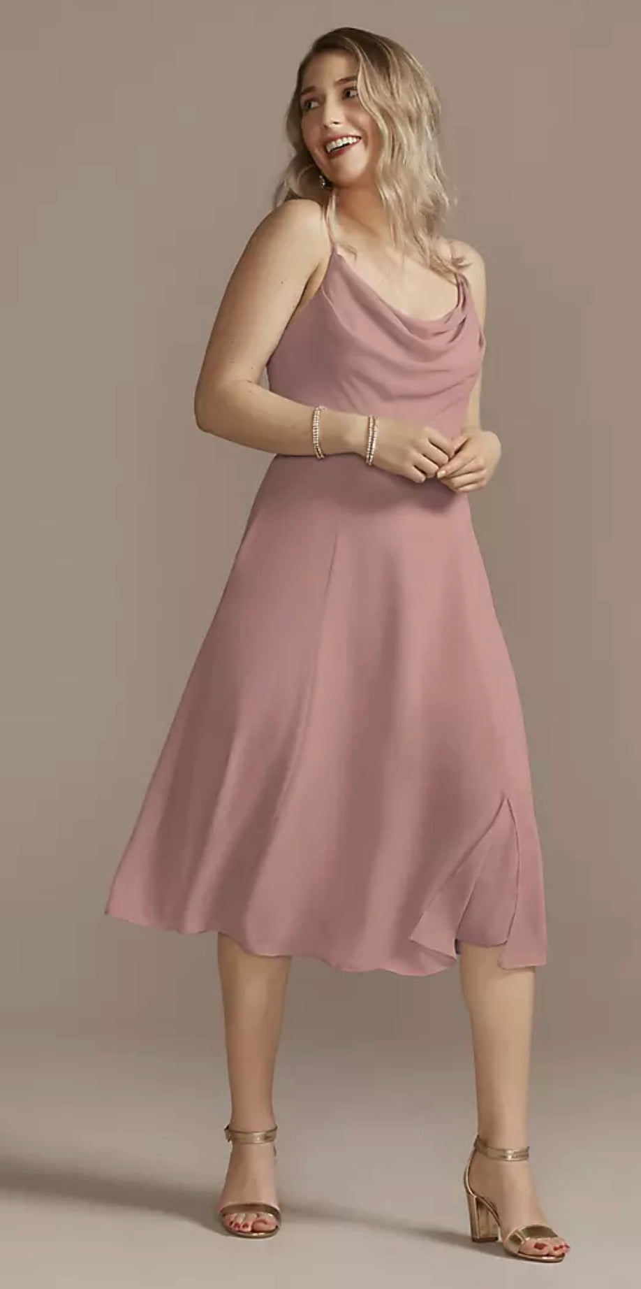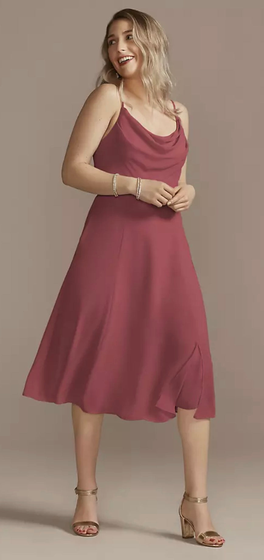 Un moderno vestido midi con un moderno escote de capucha. La abertura de la falda añade un toque coqueto.